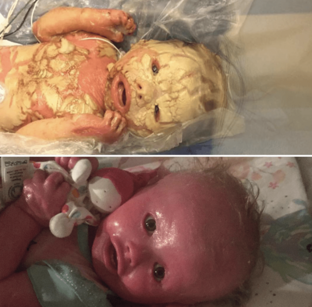 Doctors soon diagnosed Anna with harlequin ichthyosis, a rare genetic condition that causes the skin to form thick, diamond-shaped plates that crack and split. Within moments of birth, Anna’s skin hardened, then began to tear, leaving painful open wounds. Despite grim expectations, Anna defied the odds and survived. To Jennie, she was nothing short of perfect.